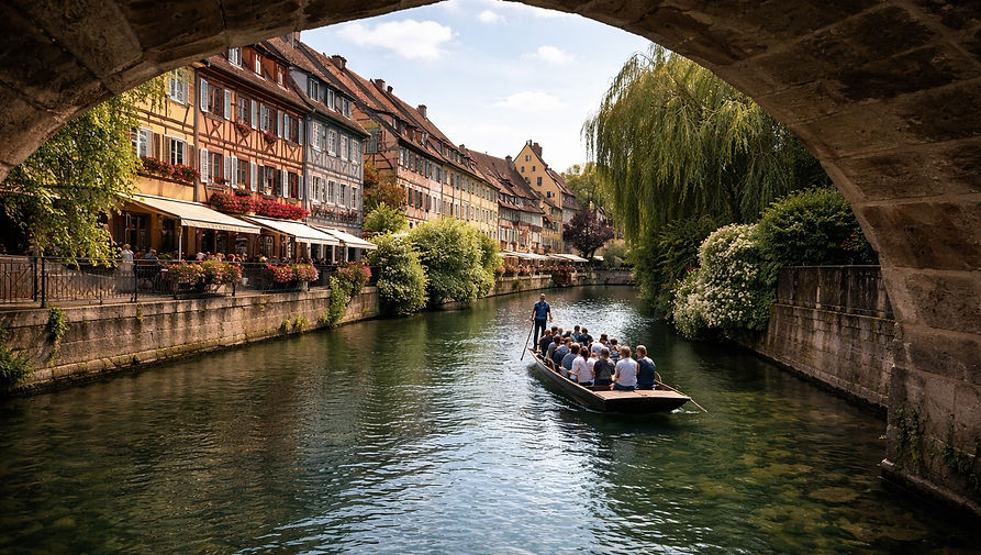 • La Petite Venise : C'est le quartier le plus iconique. Le nom vient de l'alignement des magnifiques maisons à colombages colorées qui longent la Lauch, une rivière où l'on peut faire des balades en barque.