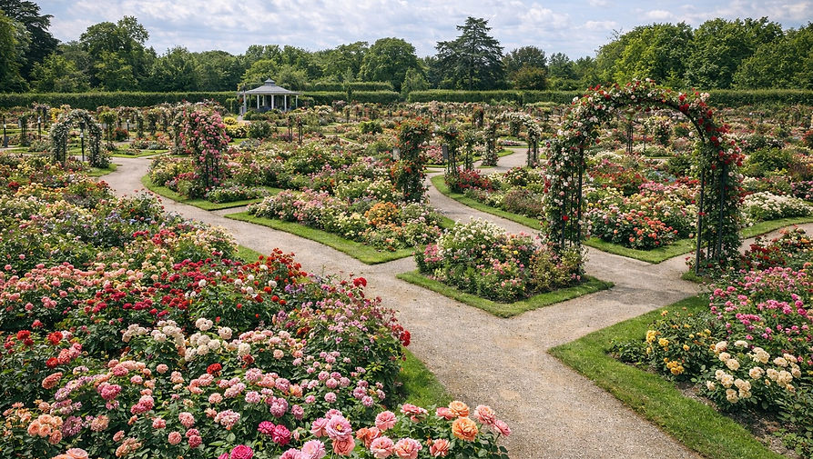 Une Collection Mondiale : Avec plus de 2 900 variétés et près de 11 000 rosiers, le jardin offre un voyage botanique allant des roses sauvages ancestrales aux créations les plus contemporaines.
